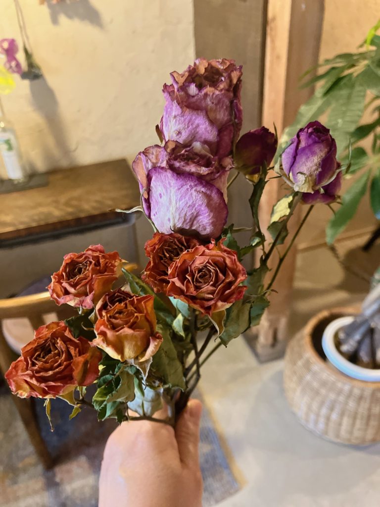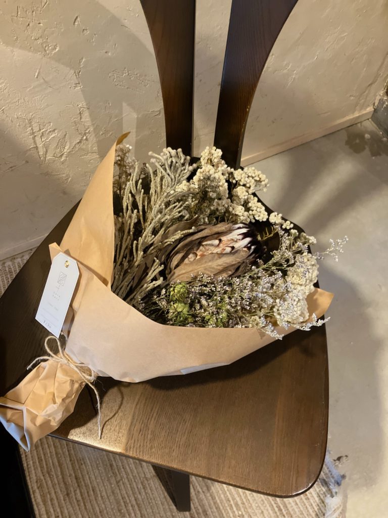 丁度春くらいから仕込んでいたドライフラワーが綺麗に仕上がってきたので花束をたくさん束ねたりもできてます。